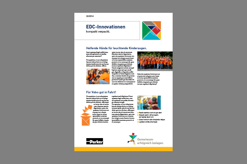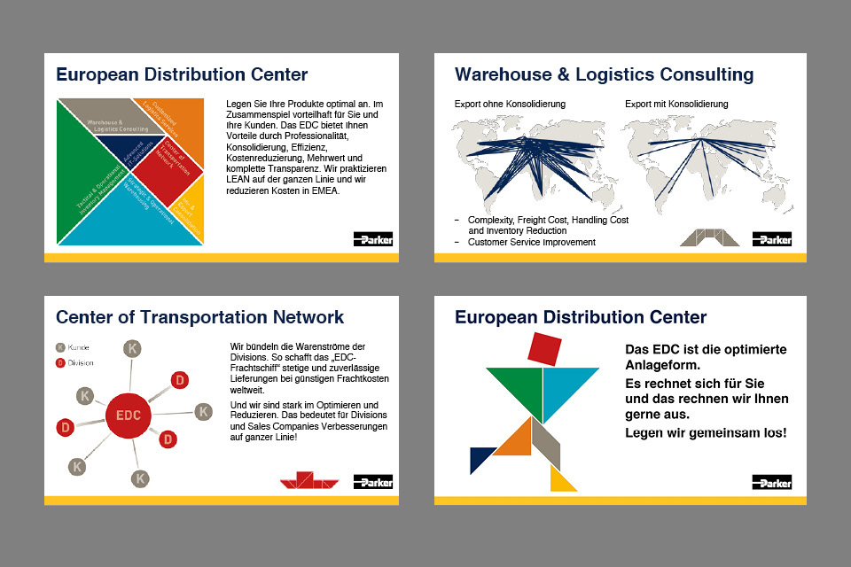 Das Tangram ist ein Zusammenspiel von Logik, Kreativität, Intelligenz und Material. Das gleiche gilt für unseren Kunden. So fügte es sich optimal zusammen! Powerpoint-Präsentation, Broschüre, Kunden- und Mitarbeiterinfo, Give-away wurden konzipiert. Liefer- und Lageraufträge sind im EDC gut angelegt. Bitte loslegen!