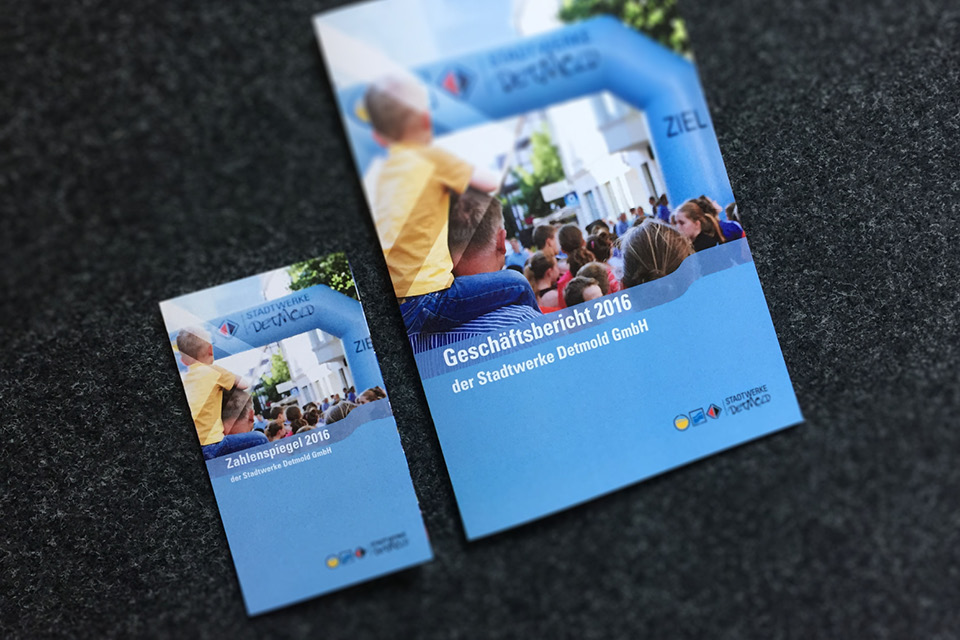 06.2017. Und zwar zum Geschäftsbericht der Stadtwerke Detmold. Neben Leistungen und Zahlen schmücken Mitarbeiter, Produkte und die gesponserten Detmolder Veranstaltungen wie „Straßentheater Festival, Sommerbühne und Residenzlauf“ diesen Bericht.