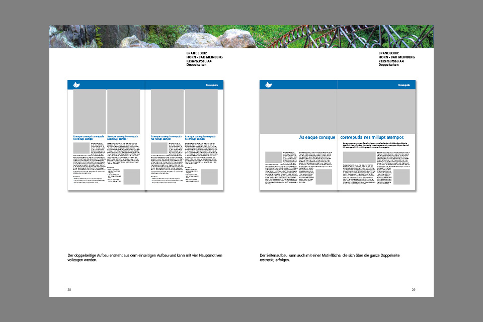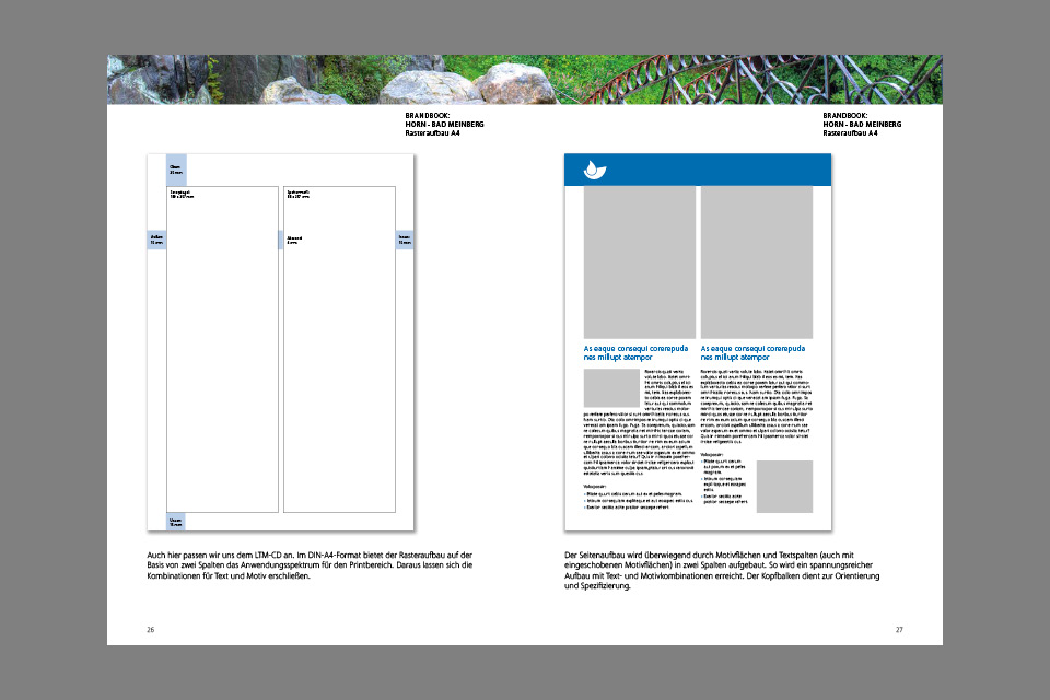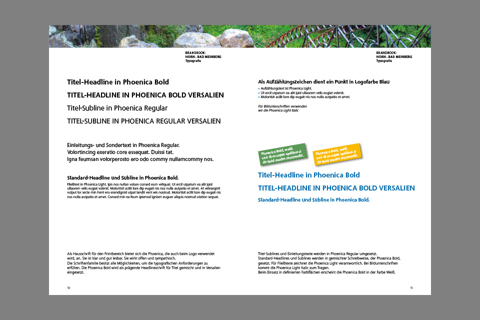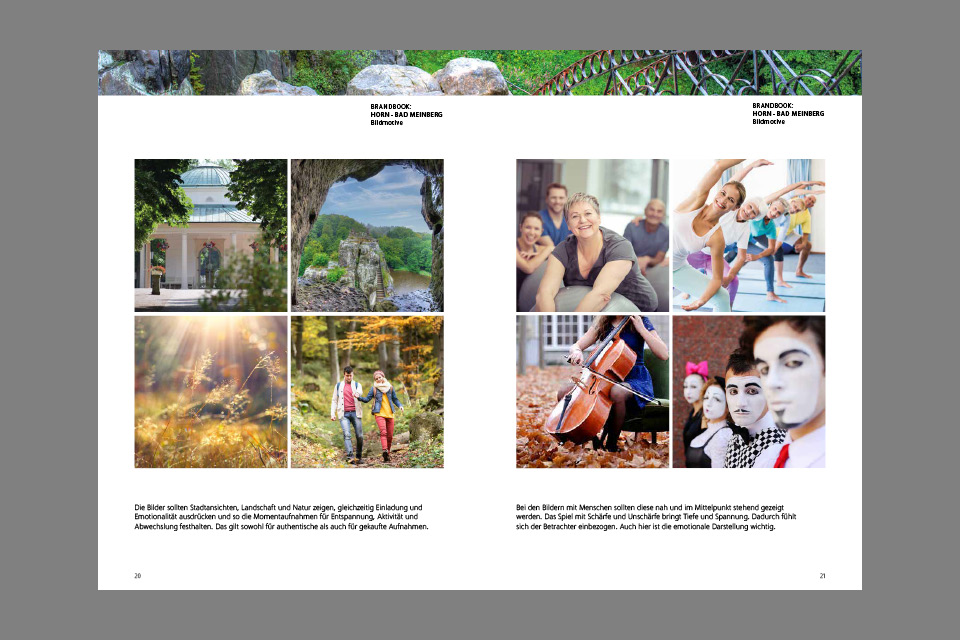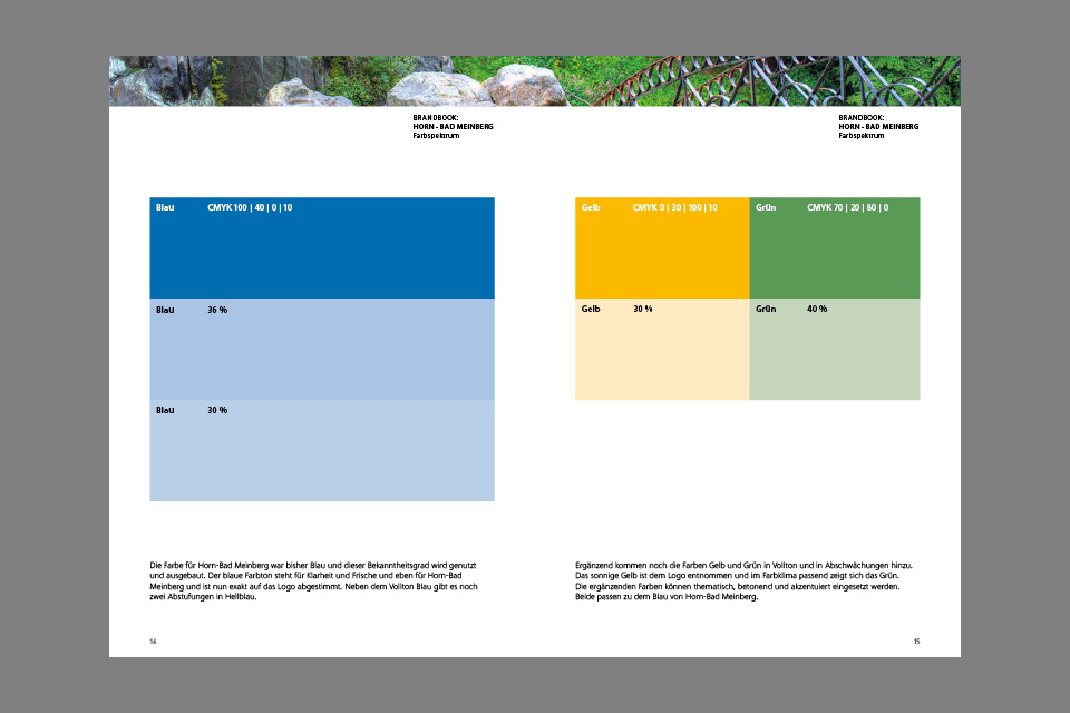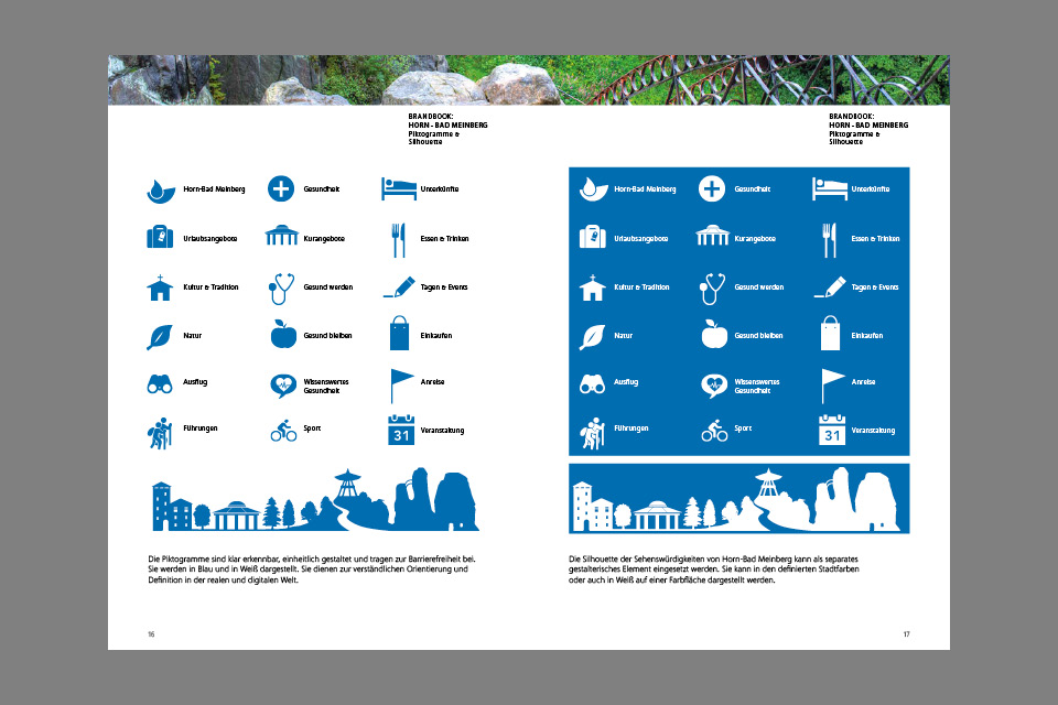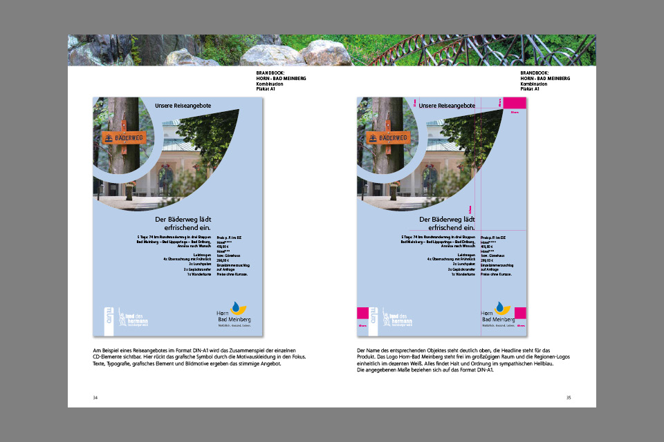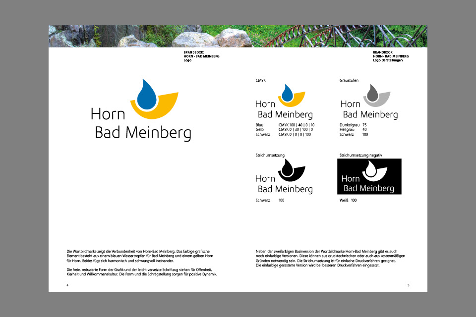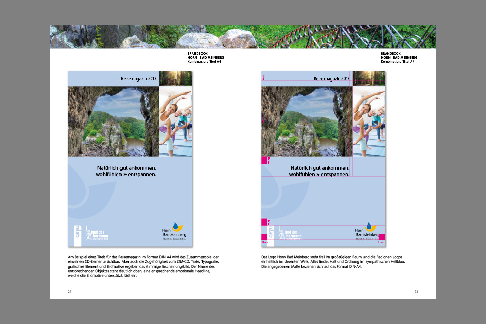Gleichzeitig bietet das Brandbook die Anleitung für Akteure zur entsprechenden einheitlichen Gestaltung vieler Objekte für diverse Medien. Mit dem Ziel, Horn-Bad Meinberg als Marke auszubauen, zu profilieren und ein attraktiver Partner für alle Beteiligten zu sein.