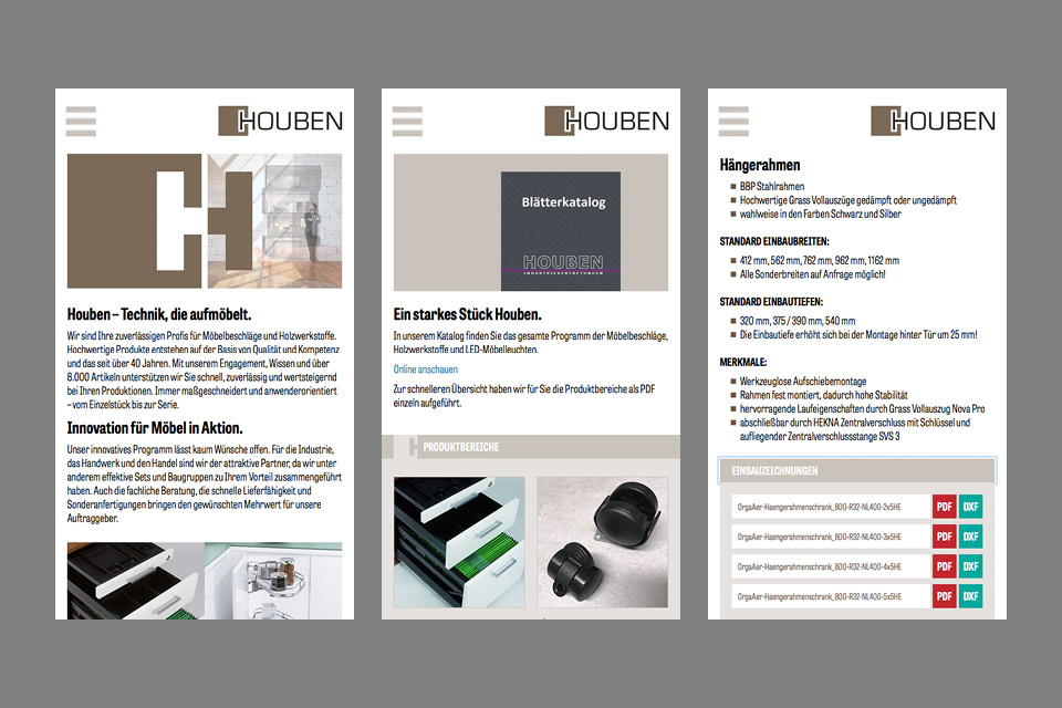 Dafür wurde bei uns mit scharfem Blick ein ansprechendes Screendesign entworfen, programmiert und am Responsive Webdesign gefeilt. Seite für Seite und Wort für Wort ließen wir so die virtuelle Heimat von Houben Industrievertretungen neu entstehen. Zum Wohlfühlen und Verweilen: www.houben.de
