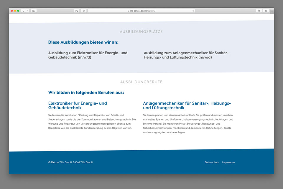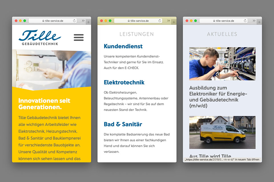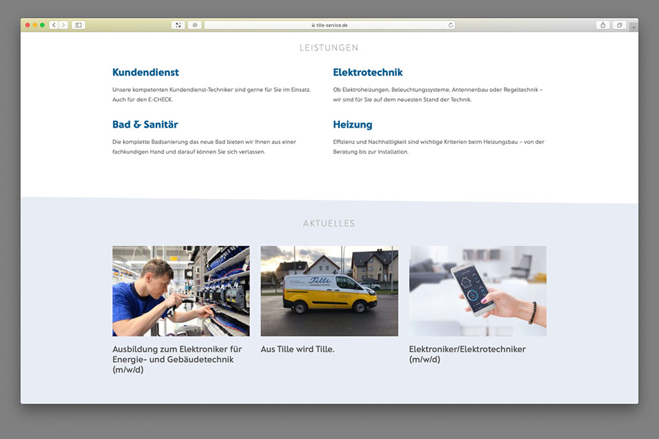 09.2019. Nachdem die k-konzeptler das Logo überarbeitet, den Claim und das Corporate Design für den 180 Jahre alten Handwerksbetrieb aus Horn-Bad Meinberg entwickelt hatten, konnte jetzt auch die neue Website online gestellt werden. Der Kunde Tille Gebäudetechnik präsentiert sich nun erfrischend neu seinen Kunden. Die k-konzeptler erstellten die Texte, gestalteten das Screendesign und entwickelten die Wordpress-Website im Responsive Design: tille-service.de