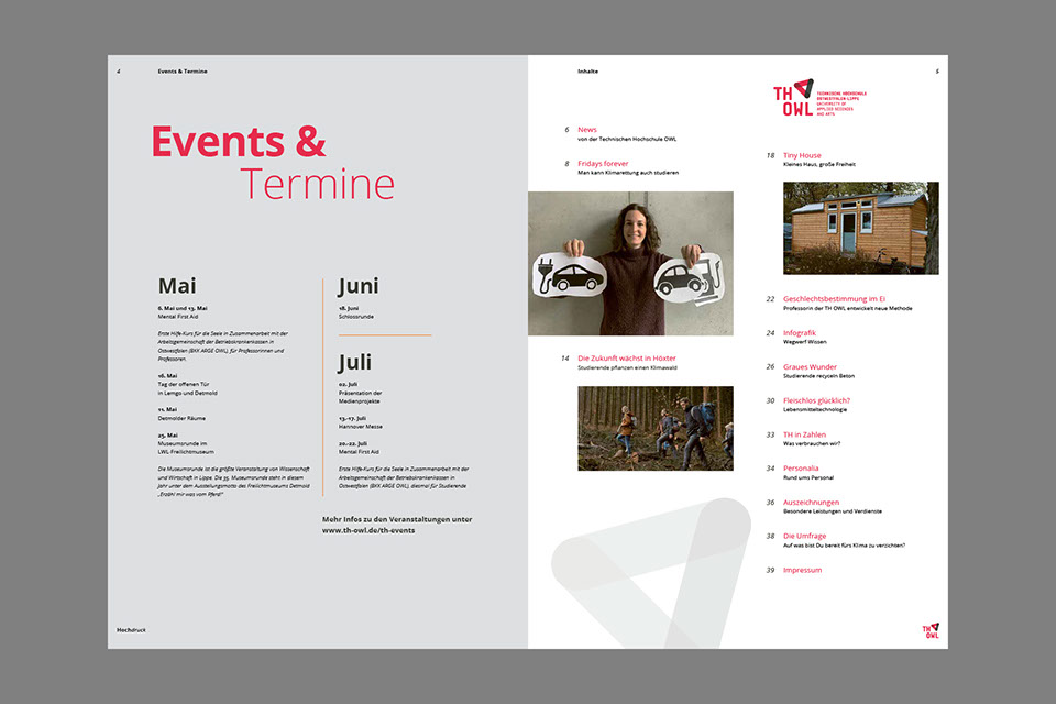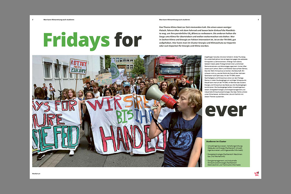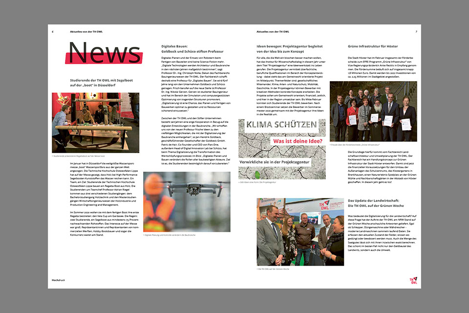 06.2020. Nachdem die k-konzeptler für den Kunden TH OWL eine Kampagne für zukünftig Studierende ausgearbeitet hatten, erhielten sie den Auftrag das Campusmagazin „Hochdruck“ CD-konform zu überarbeiten. Die TH OWL möchte nachhaltiger werden und so auch das Magazin. Zudem war das Leitthema des ersten Magazins im neuen Konzept „Nachhaltigkeit“. Die k-konzeptler arbeiteten mit Hochdruck an der neuen „Hochdruck“. Nachdem der Kunde das Konzept verabschiedet hatte, ging es auch noch an die Umsetzung der ersten Ausgabe im neuen Design. Hier die sichtbaren Resultate.