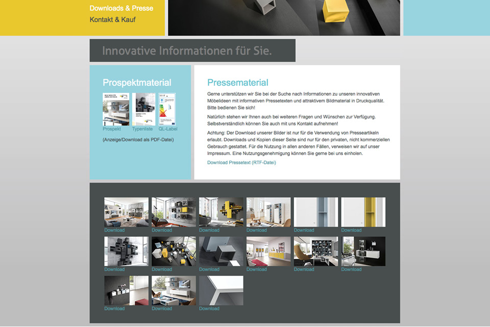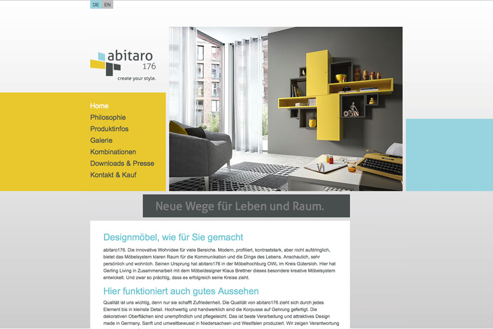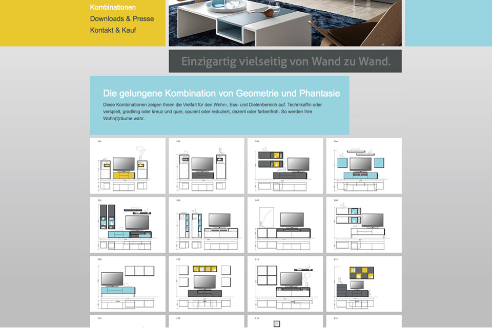 Das Konzept, Text, Screendesign und die Programmierung entstand durch Hand und Hirn der k-konzeptler innerhalb eines Monats. Im Anschluss wurde noch die englische Version erstellt. Das Konzept für die Website ist entsprechend des innovativen Möbelsystems klar in baukastenmäßig aufgebaut.