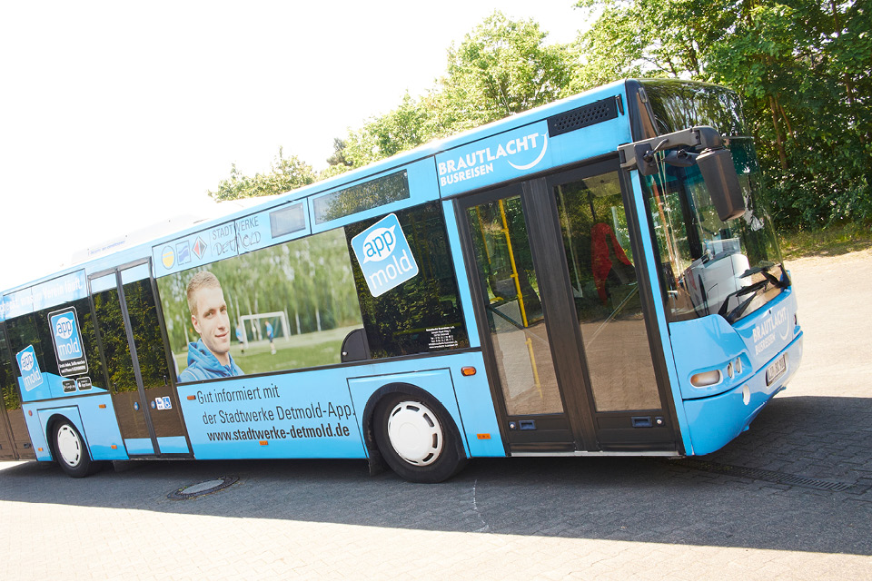 Nun sollten das, wenn möglich, alle Detmolder erfahren – über Buswerbung, Großflächen, Anzeigen, Radiospots, Flyer, Plakate, Monitore, Fußmatten und Promotionaktionen in der Detmolder Innenstadt. Diese Kampagne wurde durch eine sehr konstruktive und zeitlich ambitionierte Zusammenarbeit mit der Marketingabteilung der Stadtwerke Detmold und den k-konzeptlern absolviert. Also, einfach mal laden: Alles in Appmold! www.appmold.de