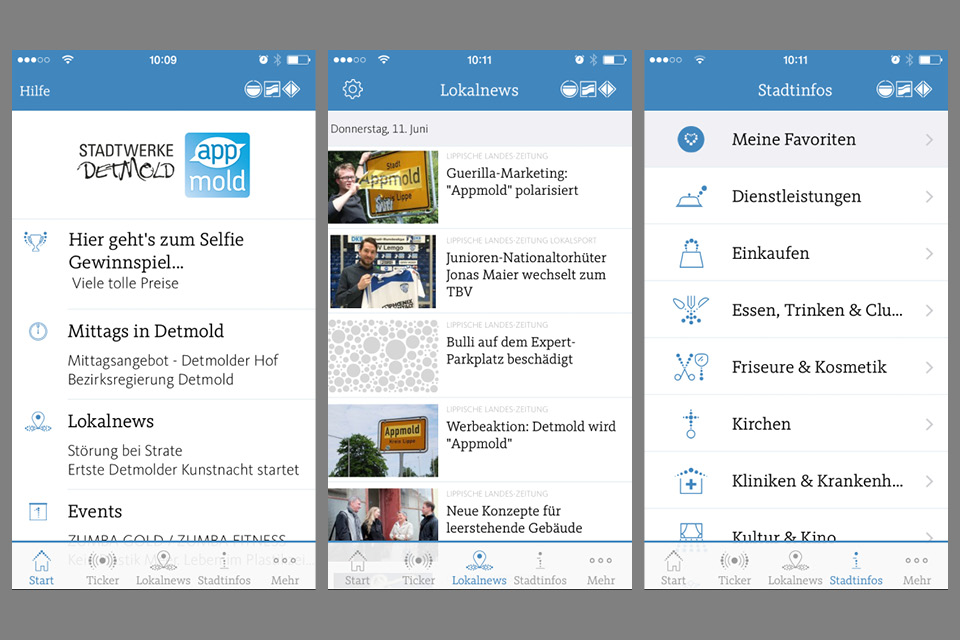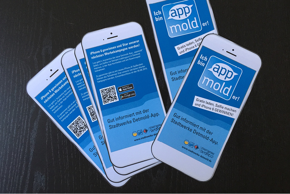 07.2015. Hier konnten die k-konzeptler einiges ihres facettenreichen Schaffens für den Kunden der Stadtwerke Detmold abrufen. Es begann mit der Namensfindung und der Entwicklung des Icons für die neue App. Dann ging es an die Konzeption der Kampagne. Menschen aus Detmold, teilweise Mitarbeiter der Stadtwerke sollten für einige Themenschwerpunkte (Shopping, Gastronomie, Vereine) der neuen Stadtwerke Detmold-App stehen. Im Stile eines Selfies vor entsprechender Kulisse wurden die Amateurmodels durch einen professionellen Fotografen in Szene gesetzt. Gleichzeitig wurde ein Selfie-Fotowettbewerb in die Kampagne eingebunden, teilnehmen kann, wer Appmold kostenlos herunter lädt.