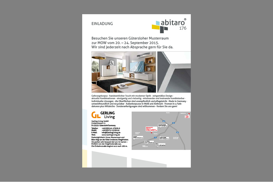 09.2015. Parallel zur MOW vom 20. bis 24. September präsentierte unser Kunde Gerling Living in Gütersloh das innovative Möbelkonzept abitaro176. Ergänzt um den neuen Holzton Wildeiche erhält die Kombinationsvielfalt noch eine natürliche Note. Handwerklich und hochwertig sind die Korpusse auf Gehrung gefertigt. Das moderne Design made in Germany kann sich nicht nur sehen lassen, es ist auch extrem unempfindlich und pflegeleicht.