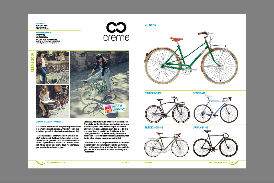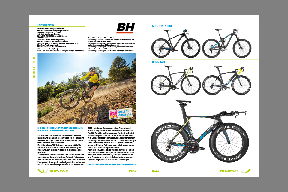 Als die Messe Eurobike am anderen Morgen ihre Pforten öffnete, war unser Kunde BIKE&CO in der großen Zeppelinhalle bestens vorbereitet, die vielen Fachhändler zu begrüßen: Neue Modelle der hauseigenen Fahrradmarken, ein riesiges Zubehörprogramm und die Bekanntgabe der Marketingaktionen für 2016 wurden präsentiert. Und natürlich ist auch das Bike-Brandbook wieder seiner Zeit voraus und bietet den Fachhändlern eine umfassende Übersicht der Streckenlieferanten mit ihren Marken, den neuesten Modellen und den direkten Kontakt zum Hersteller. Dazu erscheint das digitale Bikebook als größte B2B-Datenbank für den deutschen Fahrrad-Fachhandel. Dieses Jahr wurde beim Bike-Brandbook ein neuer „Streckenrekord“ aufgestellt – dank des besonderen Engagements aller Beteiligten.