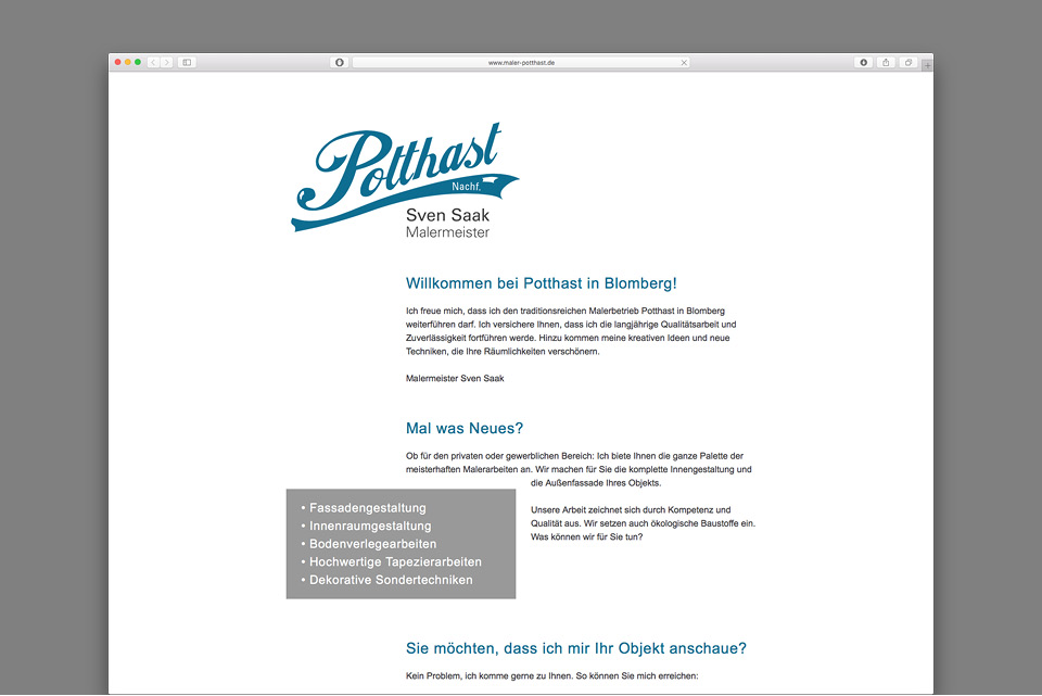 02.2016. Der alteingesessene Blomberger Malerbetrieb „Potthast“ wird von dem jungen, dynamischen Malermeister Sven Saak übernommen und weitergeführt. Dem bisherigen Namen haben die k-konzeptler einen neuen Anstrich im Retro-Style verpasst.