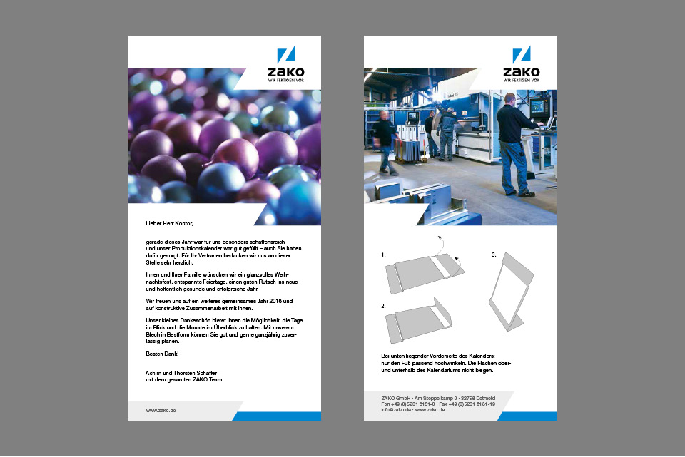Ein Mailing kommt selten allein. Die Kunden von ZAKO erhielten auch noch rechtzeitig vor dem Jahreswechsel ein kleines Präsent, das für zwei Jahre die Aufmerksamkeit erreichen soll.