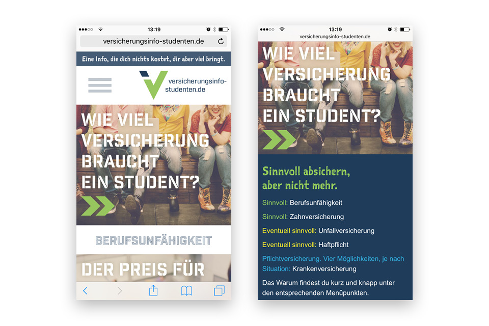 Die bisherige Website führte nicht zu dem gewünschten Erfolg. Die k-konzeptler sahen Handlungsbedarf und erklärten dem Kunden ihre Strategie für das neue Logo und die neue Website. Danach ging es an die Konzeption, Screendesign und Programmierung. Die mobile Website durfte – bedingt durch Zielgruppe und Suchmaschinen – nicht fehlen. Der Kunde war schon bei der ersten Präsentation beeindruckt und sagte: „Wär' ich mal...“