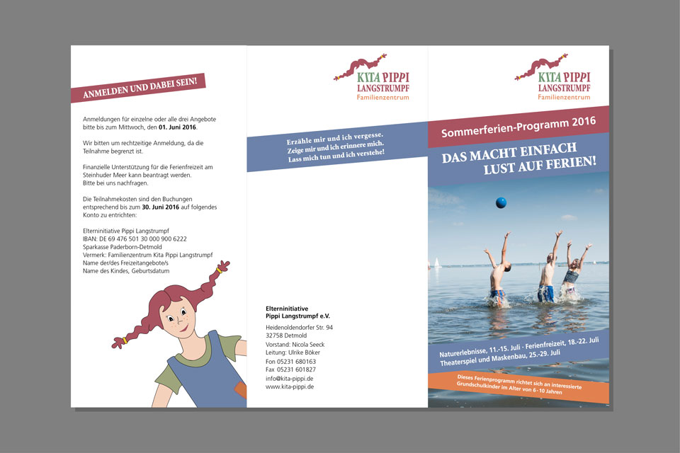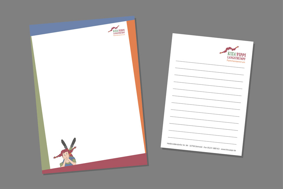 Und das Familienzentrum Kita Pippi Langstrumpf hat mit den k-konzeptlern ein paar Sachen (Logo, Illustrationen, Briefbogen, Visitenkarte, Notizblock, Flyer und Stempel) gefunden, die nicht nur gut passen und gut aussehen, sondern auch gut zu gebrauchen sind.