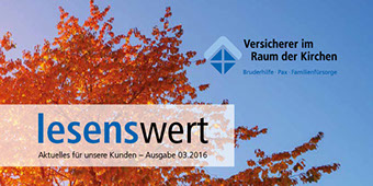 10.2016. Lesenswert ist das Kundenmagazin unseres Kunden Versicherer im Raum der Kirchen. Es ist eine informative und unterhaltsame Mischung interessanter Themen.