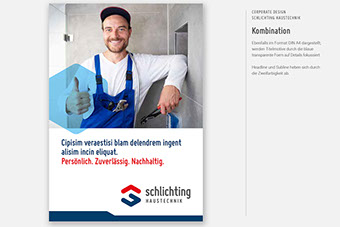 Innerhalb von drei Monaten wurden alle Bausteine für einen erfolgreichen Auftritt entwickelt: Marke, Claim, Corporate Design und erste Umsetzungen auf Firmenfahrzeuge, Schilder und Geschäftspapiere. Der Relaunch der Website ist entsprechend dem neuen CD in Arbeit. Der Claim für Schlichting Haustechnik „Persönlich. Zuverlässig. Nachhaltig.“ spiegelt so ganz nebenbei auch die Zusammenarbeit des Kunden mit den k-konzeptlern wider.