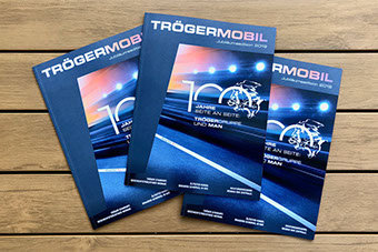 Eine Zeitreise durch hundert Jahre Tröger und MAN veranschaulichen die Unternehmensgeschichten und technischen Entwicklungen auf dem Sektor der Mobilität. Ebenso wurde die Brauerei Scherdel aus Hof gewürdigt, die schon 100 Jahre Kunde bei Tröger ist. Die k-konzeptler freuen sich, dass sie mit der Entwicklung und Realisierung dieser hochwertigen Jubiläumsedition in guter Zusammenarbeit mit der Geschäftsleitung das einmalige Ereignis manifestieren konnten.