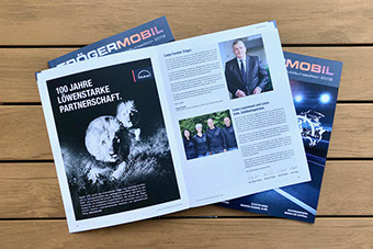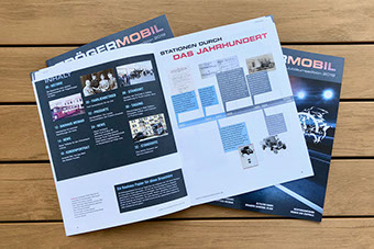 10.2019. 100 Jahre ist unser Kunde, die TrögerGruppe, Seite an Seite mit MAN und somit ältester MAN-Partner der Welt. Von der Geschäftsleitung erhielten die k-konzeptler den Auftrag, eine Broschüre zu kreieren. Ein besonderes Material „Das Bauhaus Dessau Papier“ von Gmund passte hervorragend, denn auch das Bauhaus feiert in diesem Jahr die 100 Jahre. Eine Prägung und eine partielle Lackierung betonen das Ereignis dieser Partnerschaft.