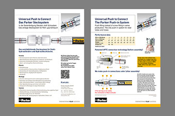 11.2019. Unser technischer Kunde Parker Hannifin ist in der Mobilhydraulik weltweit gut aufgestellt. Mit dem patentierten Stecksystem „Universal Push to Connect“ für Stahlhydraulikrohre und Hydraulikschläuche gewinnt man in der Serienfertigung eine leckagefreie Montage und eine Zeitersparnis von bis zu 50 %. Die k-konzeptler haben das für ihren langjährigen Kunden in einem 24-seitigen Prospekt und einem komprimierten Datenblatt gestaltet. Und dies in einer deutschen Fassung für den deutschsprachigen Raum und in englisch für den internationalen Einsatz ausgearbeitet.
