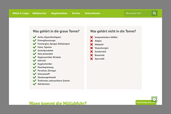10.2021. Wann wird die Tonne abgeholt, was gehört in den Hausmüll und wo gibt es Abgabestellen? Die passenden Antworten dazu finden sich nun auf der von uns neu gestalteten Website abfall-lippe.de für den Abfallwirtschaftsverband Lippe.