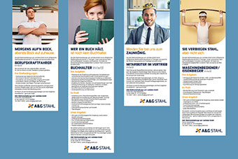 02.2022. Fachkräfte sind in Deutschland eine permanente Mangelerscheinung. So auch für unseren Kunden A&G Stahl aus Thüringen. Deswegen bestand der Wunsch, besondere Stellenanzeigen zu kreieren, die den Normalbereich verlassen, sich deutlich abheben und zwar sympathisch. Genau das Richtige für k-konzept. So entwickelten wir eine kleine Serie von Stellenanzeigen, die sowohl für Printmedien als auch für Social-Media aufbereitet wurden. Wir stellen vor...