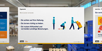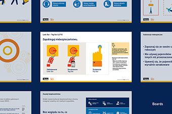Ein weiterer Auftrag bezog sich auf die Sicherheit am Standort Senne/Windelsbleiche. Dort werden in einem Bereich Trainings zur Arbeitssicherheit absolviert. Dafür wurden 10 Boards informativ umgesetzt. Auch für Polen erstellte k-konzept die entsprechenden Boards.